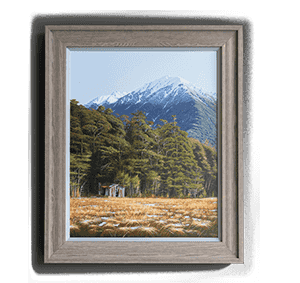 The alpine area of Nelson Lakes National Park is another of our favourite tramping and kayaking destinations. Glacial activity has gouged out two large, almost parallel troughs to form Lake Rotoiti and Lake Rotoroa. The spectacular mountains rising up from these lakes are the northern tip of the Southern Alps. Dense beech forest covers the mountainsides and a diverse alpine flora is abundant on the tops. Peter photographed 'Lake Rotoroa' early one morning in October but within minutes a breeze came up and rippled the lake. This painting was commissioned by a friend whose family history is forever entwined in this area.